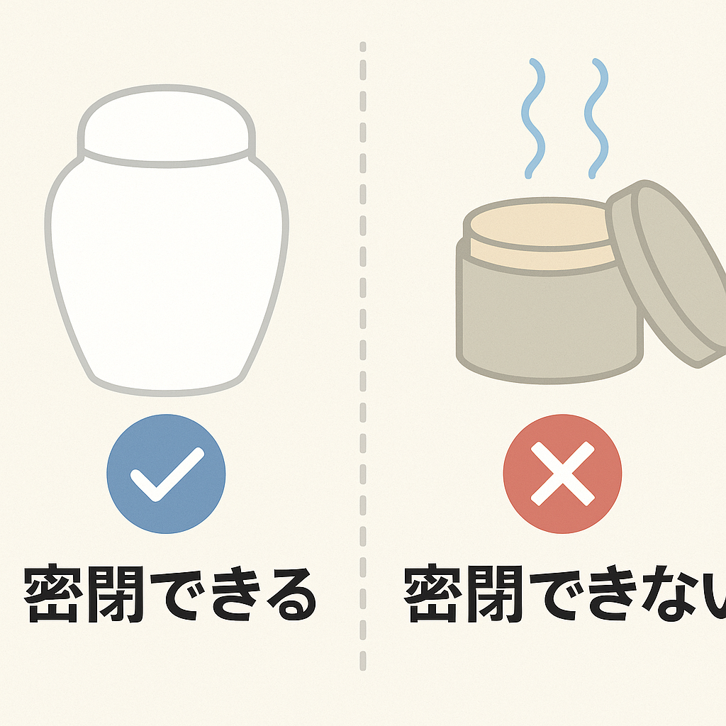 粉骨後の入れ物は、密閉性を基本に、種類・用途・素材を組み合わせて検討するのがポイントです。