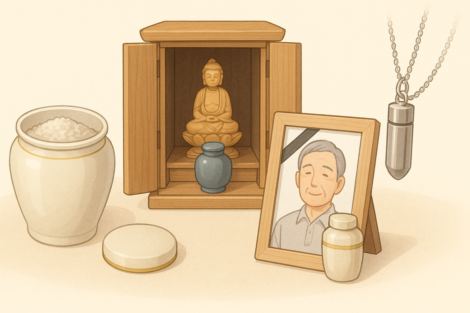 近年では、モダンなデザインの手元供養品も増えており、仏壇を置かない家庭でも自然に取り入れられます。