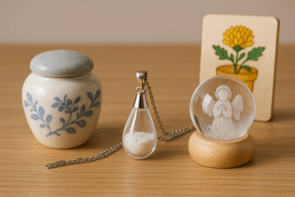 ミニ骨壺は、手元供養の中でも特に一般的な方法。素材は陶器・金属・ガラス・木製など多様で、インテリアに馴染むデザインが豊富です。